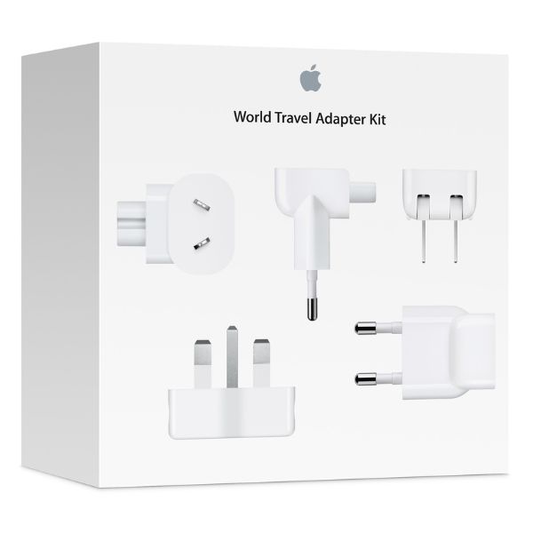 El Kit Apple Adaptador de Viaje Mundial es una opción imprescindible para quienes desean mantener sus dispositivos cargados en cualquier parte del mundo. Este práctico kit incluye siete enchufes de CA diseñados para adaptarse a diferentes tomas de corriente, lo que garantiza su uso en regiones como América del Norte, Japón, China, Reino Unido, Europa, Corea, Australia, Hong Kong y Brasil.
