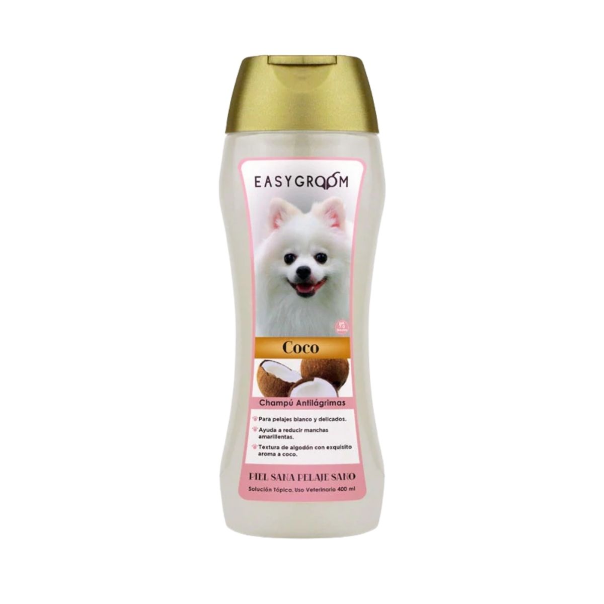 Shampoo de Coco: es especial para el pelo de los perros blancos con pieles delicadas como: maltés, Bichón, Poodle, Samoyedo, Schnauzer blanco, Westie entre otros. Te ofrecé un pH 7.0 o neutro, además de ser anti lágrimas. El aceite de coco posee un factor de protección solar natural que al ser aplicado sobre la piel y el pelo evitá las lesiones ocasionadas por la exposición al sol. También, tienen diversas aplicaciones medicinales, cosméticas y domésticas que se han empleado tradicionalmente en nuestra cultura. Tiene la virtud de proporcionar humectación a la piel, suavidad, brillo y sedosidad al pelo. Y además, se absorbe rápidamente a través de la piel y no deja residuos grasos.