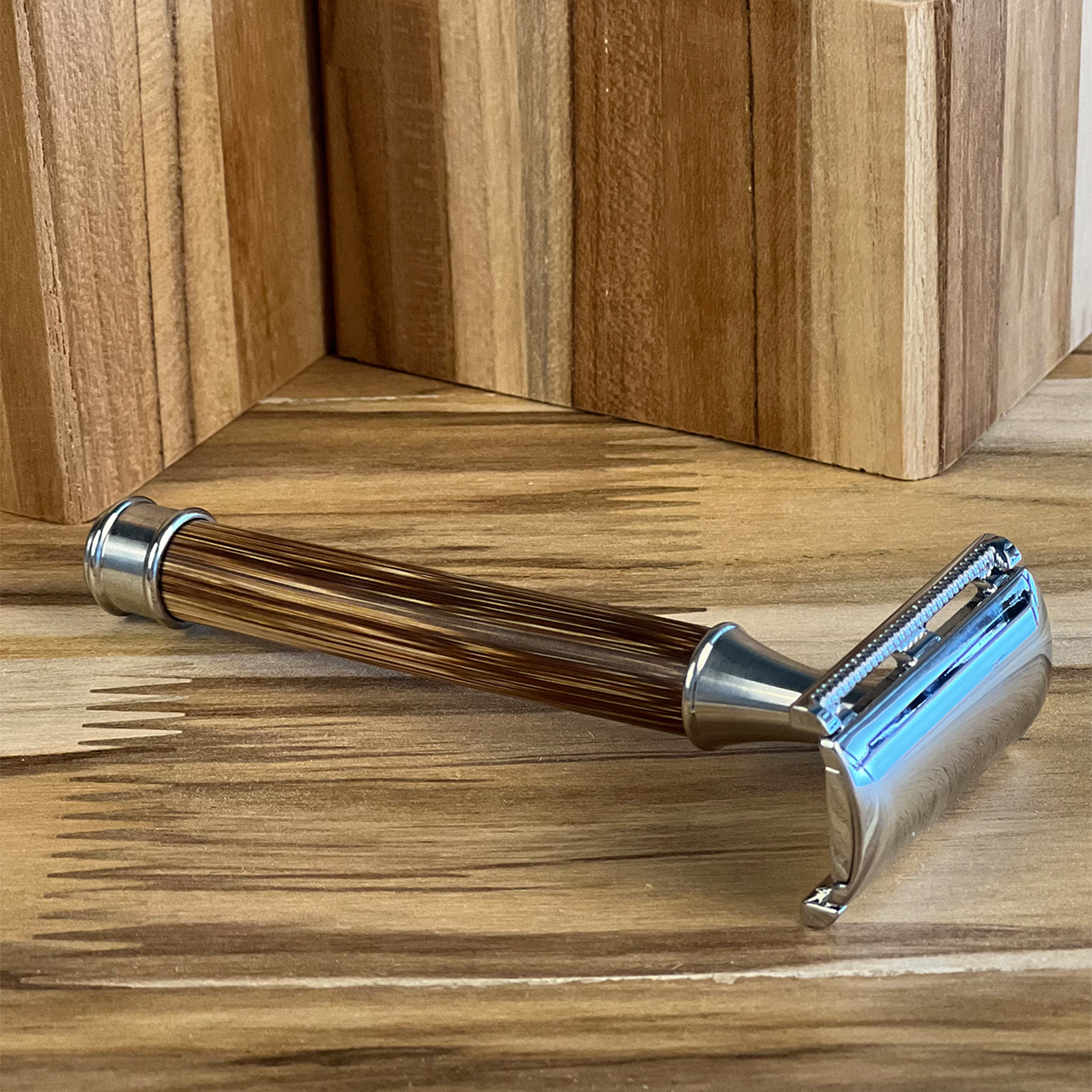 Afeitadora de acero inoxidable con mango de madera, tu rutina de afeitado puede ser libre, ya que, solo necesitarás cambiar la hoja y volverá a dejar tu piel hermosa y suave, con esta hermosa afeitadora clásica marca Manipura, de acero inoxidable con mango de madera, que incluye 10 blades (hojillas de acero inoxidable)