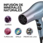 Primero, el Secador Remington Mineral Glow D5408 destaca por su rejilla revestida con cerámica avanzada y cuatro minerales naturales: cuarzo, turmalina, ópalo y piedra de luna. Este diseño no solo ayuda a que tu cabello se seque más rápido, sino que también lo deja brillante y libre de frizz.