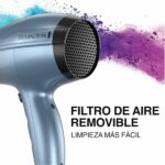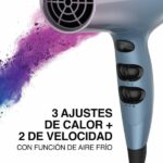 Además, la tecnología de acondicionamiento iónico, que ofrece un 90% más de iones, no solo elimina el frizz, sino que también aporta un brillo saludable a tu cabello en cada uso. A su vez, la secadora incluye ajustes de temperatura y velocidad, y viene equipada con una ráfaga de aire frío pa