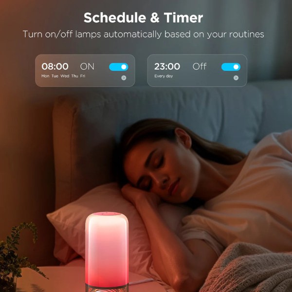 Por último, incorpora función de temporizador para ayudarte a dormir o despertar con suavidad. Así pues, esta lámpara inteligente combina diseño, tecnología y facilidad de uso para mejorar tu espacio sin complicaciones.