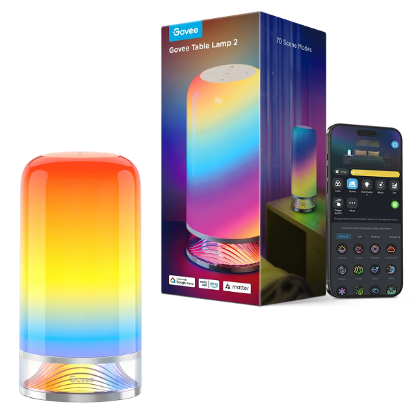 La Lámpara de mesa Govee 2 está diseñada para crear un ambiente cálido y moderno en cualquier habitación. Además, gracias a su tecnología RGBIC, ofrece colores más vivos y transiciones suaves que llenan tus espacios con una iluminación atractiva y muy fácil de personalizar. Por eso, es ideal tanto para decorar como para acompañarte en tu día a día.