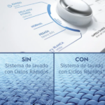 Además, la lavadora incluye varias características útiles. Por ejemplo, el dispensador AutoClean diluye completamente el detergente y suavizante, evitando manchas en la ropa y manteniendo el dispensador limpio. También ofrece ciclos rápidos que optimizan el tiempo de lavado sin sacrificar el rendimiento, promoviendo así un cuidado adicional de las prendas.