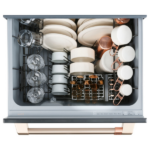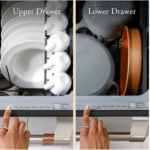 Su sistema Knock to Pause permite detener el ciclo con un simple toque y reanudarlo fácilmente, mientras que su diseño ergonómico del cajón superior facilita la carga y descarga de los utensilios sin doblarse.