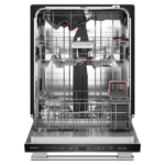 El lavaplatos KitchenAid 360 Max Jets KDTS424S ofrece un diseño elegante y moderno que se adapta a cualquier cocina. Con su acabado PrintShield de acero inoxidable o Juniper y herrajes a juego, no solo luce sofisticado, sino que además resiste huellas y manchas. Por lo tanto, mantiene la apariencia limpia durante más tiempo. De hecho, gracias a su integración perfecta bajo la encimera, mejora notablemente la estética general del espacio.