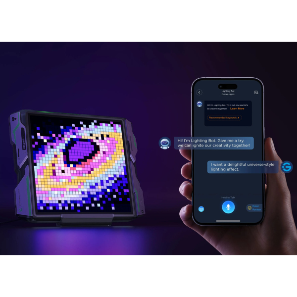 Su pantalla RGBIC de 32×32 píxeles permite mostrar efectos claros y precisos sin zonas apagadas. Asimismo, la IA integrada analiza el entorno para ajustar los colores en tiempo real, lo que genera una iluminación más natural. Por lo tanto, el resultado es una ambientación envolvente que cambia según lo que ocurre en pantalla.