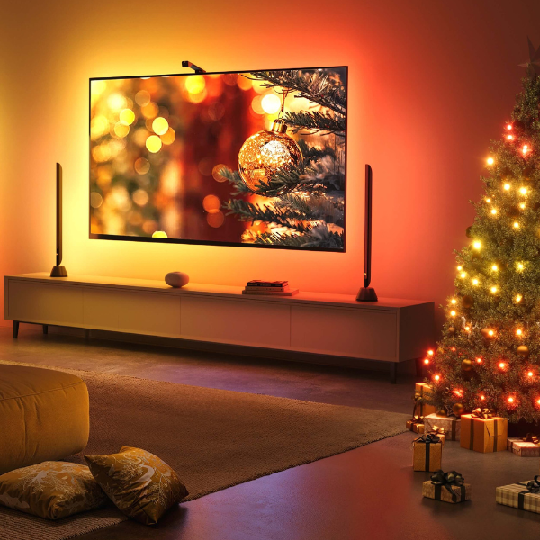 Además, el sistema RGBIC+W añade un chip blanco cálido que ofrece tonos más naturales. De este modo, las luces dan una iluminación equilibrada que combina brillo, intensidad y comodidad visual. Como resultado, podrás ver tus contenidos favoritos sin distracciones ni reflejos molestos.