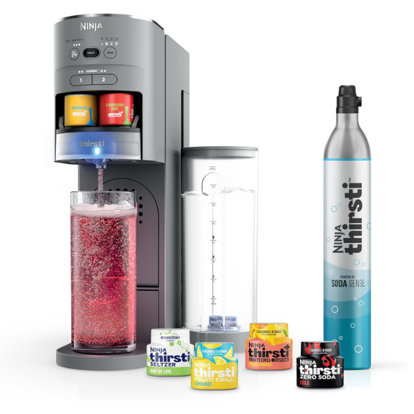 La Maquina de bebidas Ninja Thirsti es una opción única para personalizar tus bebidas favoritas. Gracias a sus diversas características, puedes elegir entre más de 20 sabores y mezclar opciones para crear combinaciones infinitas.