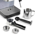 Por último, la máquina viene con herramientas útiles como la cuchara medidora y el apisonador. De hecho, todo está libre de BPA, lo que garantiza un café más seguro. En resumen, con la Cuisinart EM100NP1, preparar un espresso, capuchino o café con leche se vuelve fácil, rápido y delicioso cada día.