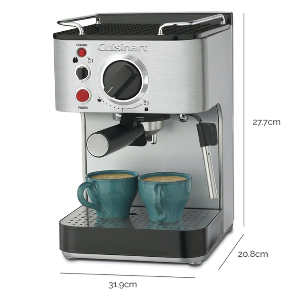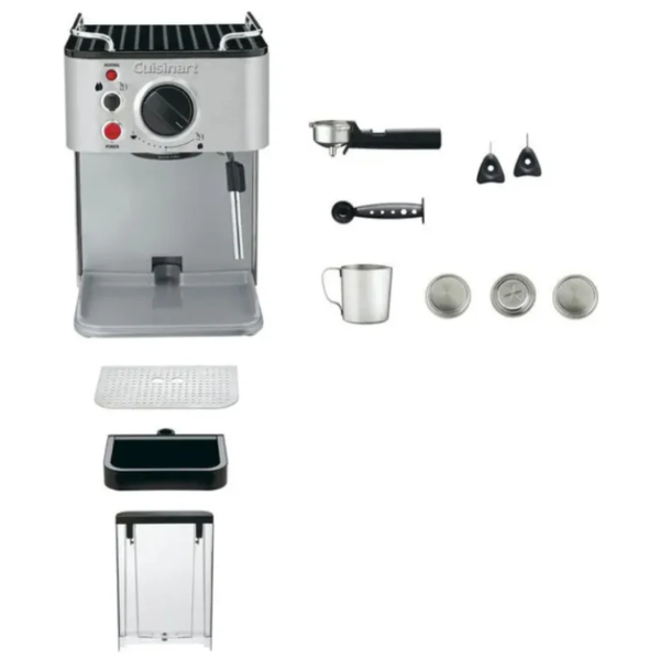 La máquina de espresso Cuisinart EM100NP1 te permite disfrutar de una taza de café como en una cafetería, sin salir de casa. Primero, con solo presionar un botón, puedes preparar un espresso caliente, rico y lleno de sabor. Además, su diseño de acero inoxidable le da un toque elegante y duradero a tu cocina, lo que mejora tanto la estética como la funcionalidad.