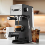 Primero, la Máquina de expreso Cuisinart Slim EM-160 te permite preparar café estilo barista en casa de forma sencilla. Ya sea que prefieras un espresso intenso, un latte suave o un café frío, con solo pulsar un botón obtienes bebidas llenas de sabor y aroma, ideales para empezar bien el día.