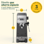 Finalmente, su diseño delgado ahorra espacio y aporta comodidad. Incluye depósito de agua extraíble de 1,5 litros, bandeja ajustable, placa calienta tazas y compatibilidad con tazas de viaje grandes. Por lo tanto, es perfecta para cocinas pequeñas, mañanas rápidas y amantes del café práctico.