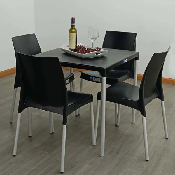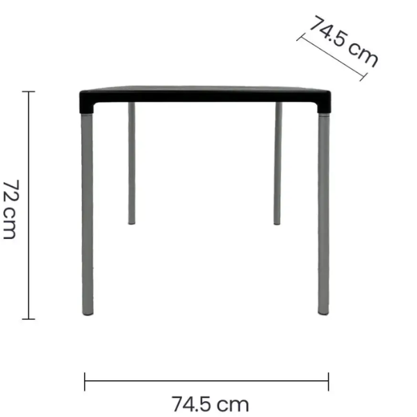 Con medidas de 74.5 cm x 74.5 cm x 72 cm, esta mesa es ideal tanto para uso doméstico como comercial. Asimismo, la combinación de plástico negro y metal gris le da un toque moderno y elegante. Por lo tanto, la Mesa Taike Ada es una excelente opción si buscas estilo, durabilidad y funcionalidad en un solo mueble.