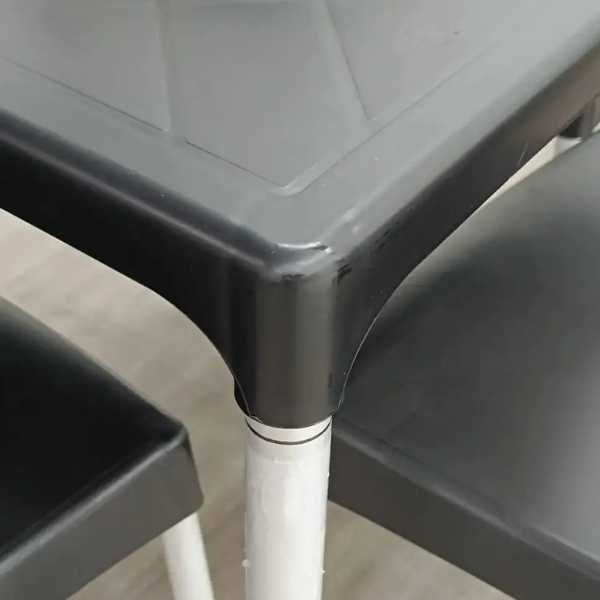 Esta mesa está hecha de plástico de alta calidad, lo que la hace resistente y duradera. Así, puedes usarla todos los días sin preocuparte por desgaste o daños. Igualmente, es fácil de limpiar, lo que la hace perfecta para lugares con mucho movimiento, como cafeterías o espacios comerciales. De hecho, su material asegura una larga vida útil.