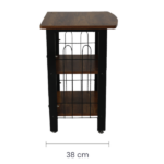 El metal negro que forma parte de su estructura le da un toque de sofisticación y durabilidad adicional. Con unas medidas de 40 x 38 x 57 cm, esta mesa es compacta y funcional, ideal para aprovechar al máximo cada rincón de tu hogar. Puedes ubicarla en la sala de estar como una mesa auxiliar para colocar tus libros o decoraciones favoritas; o incluso, en tu dormitorio, como una mesita de noche práctica y estilizada.