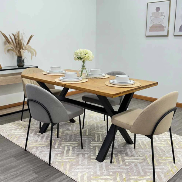 La Mesa Tokoa ME-680 combina madera de pino y estructura negra, ofreciendo estilo natural y moderno. Perfecta para 4 o 6 personas, aporta calidez, durabilidad y versatilidad, ideal para comedores acogedores y reuniones con familia o amigos.