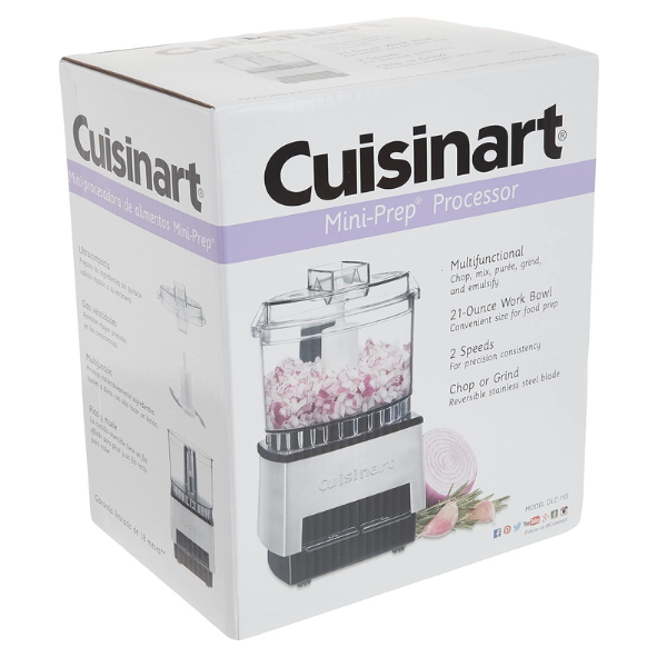 El Mini procesador Cuisinart 1 taza DLC1SS es ideal para tareas pequeñas en la cocina. Es compacto, práctico y fácil de usar. Además, ocupa poco espacio, por lo tanto, se adapta a cualquier encimera. Sin embargo, ofrece buena potencia para picar y moler alimentos diarios.