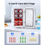 El mini refrigerador BEICHEN de 6L, es compacto y muy práctico. Sus dimensiones son 5,5″ de profundidad, 5,5″ de ancho y 11,2″ de alto, por lo que se adapta fácilmente a escritorios, dormitorios o autos. Además, cuenta con una puerta, color negro, y no incluye congelador. Por lo tanto, resulta ideal para espacios pequeños y para quienes buscan una solución portátil y eficiente.