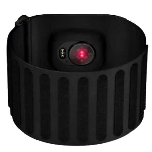 Este monitor combina comodidad y durabilidad. Su correa está hecha de una mezcla suave de 70 % nailon y 30 % elastano, lo que la hace elástica y transpirable. De hecho, la carcasa es de plástico ligero, con un módulo de 41,7 x 37,6 x 7,8 mm y un peso de solo 14,5 g. Además, existen dos tamaños de brazalete para ajustarse a todos: S-M y L-XL, ambos muy delgados y livianos, lo que facilita su uso diario sin molestias.