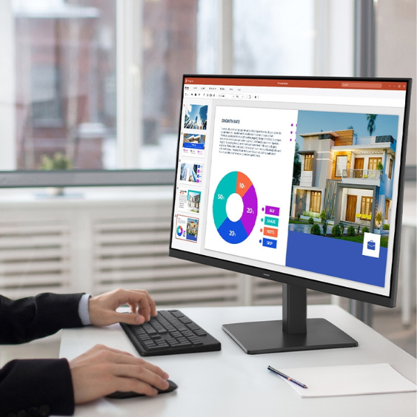 El Monitor Samsung Essential S3 24″ FHD S32GF ofrece una imagen clara y brillante que mejora cualquier tarea diaria. Gracias a su panel IPS, los colores se ven vivos desde casi cualquier ángulo, lo que permite disfrutar de una vista más amplia y cómoda. Además, este panel mantiene la precisión del color incluso cuando te mueves, por lo que siempre verás una imagen consistente.