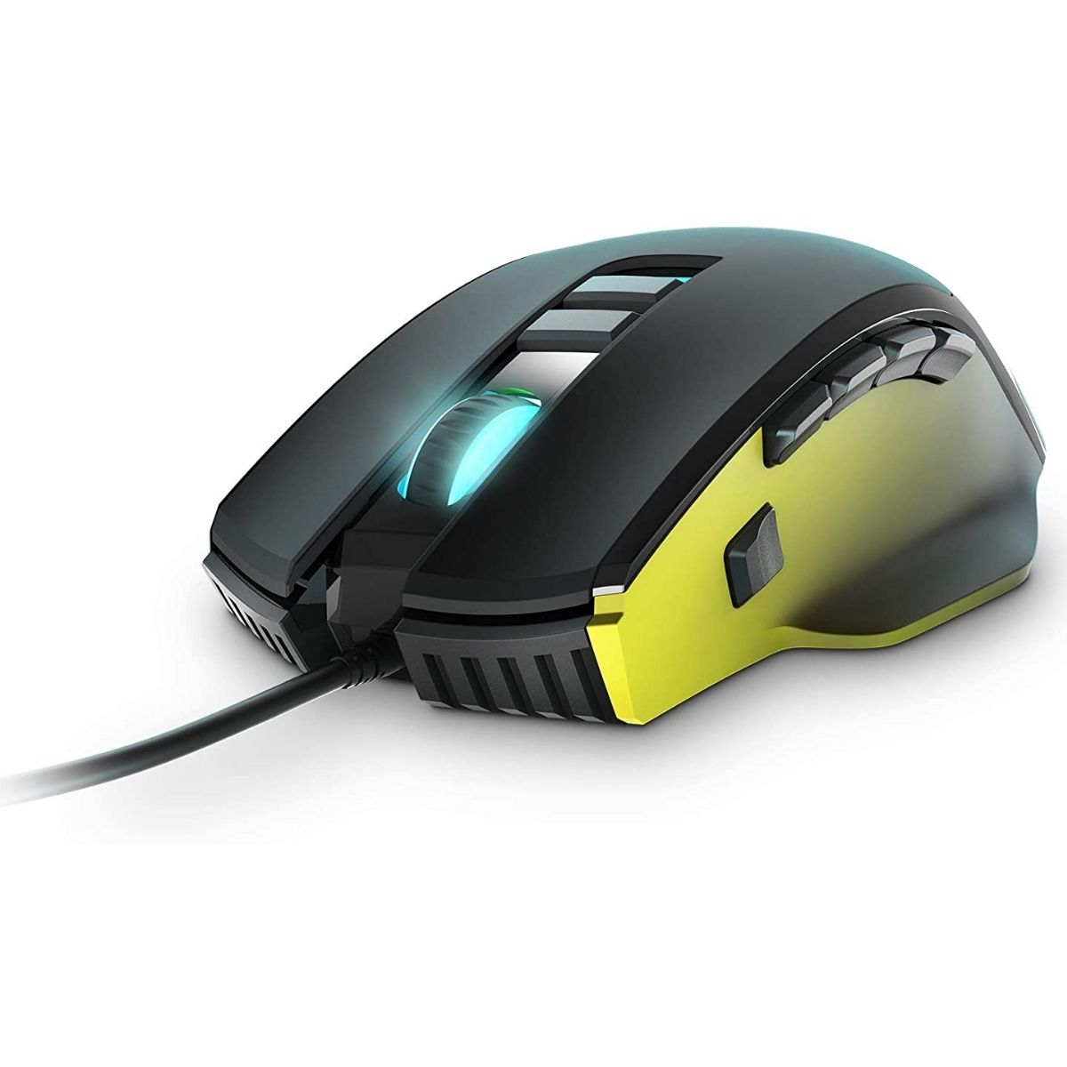 El ESG M5 Triforce es un mouse con cable para jugadores exigentes con luces RGB, peso regulable en la base, 3 botoneras intercambiables laterales y con hasta 15 botones configurables con lo que podés regular los ajustes que necesites en cada partida.