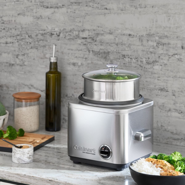 Prepara arroz perfectamente cocido para toda la familia con la olla arrocera Cuisinart 8 tazas. Su función de mantener caliente, vaporera incorporada y diseño fácil de limpiar garantizan comidas deliciosas y saludables de manera rápida y sencilla.