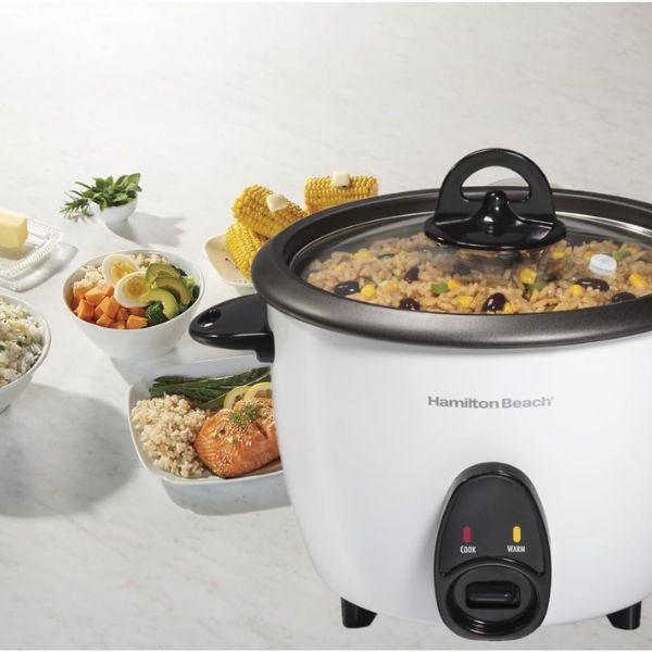 La Olla Arrocera Hamilton Beach 37516 es la opción perfecta para cualquier hogar que disfrute de comidas caseras. Con controles simples de un solo toque, cocinar arroz, cereales calientes, sopas y verduras al vapor se vuelve muy fácil. De hecho, esta olla arrocera no solo cocina arroz a la perfección, sino que también cambia automáticamente al modo de mantener caliente cuando termina la cocción. Así, puedes estar seguro de que tu comida estará lista para servir en cualquier momento, sin preocupaciones.