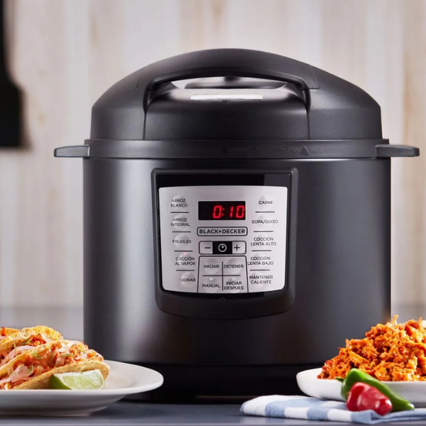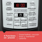 La Olla Multifunción Black+Decker de 5.7 litros PR100B es el aliado perfecto para preparar comidas deliciosas y saludables todos los días. Además, gracias a sus 7 funciones de presión, puedes cocinar arroz, frijoles, carnes, sopas y guisos de manera rápida y sencilla. Incluso su gran capacidad te permite preparar porciones para toda la familia sin complicaciones.