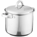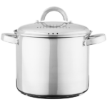 - Juego de tres piezas: olla, tapa con colador e inserto.