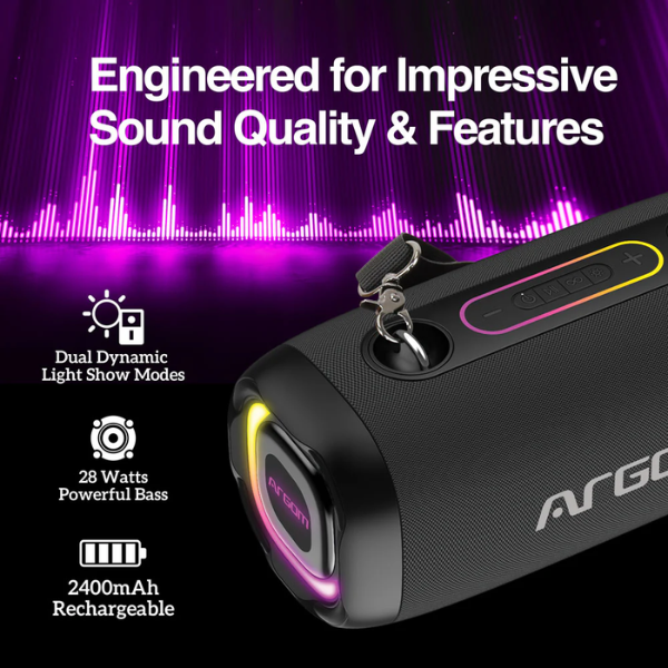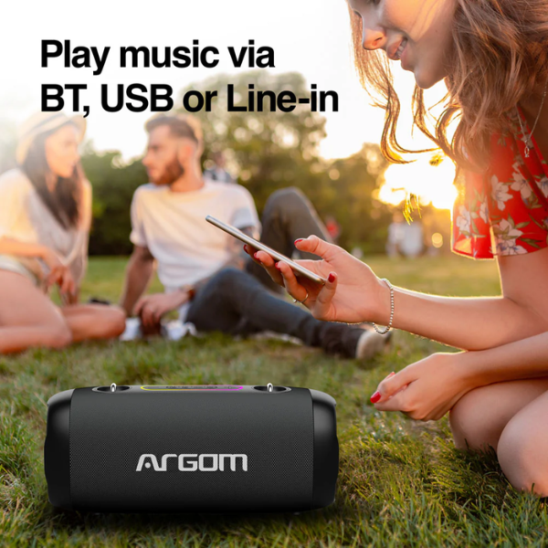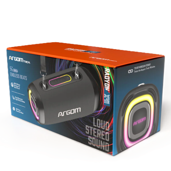 El parlante Argom SP-3141BK Radyon X41 es un altavoz inalámbrico Bluetooth que combina sonido potente y diseño portátil. Además, es ideal para quienes disfrutan de la música en cualquier lugar, ya que ofrece hasta 7 horas de reproducción continua y un audio claro y fuerte. Por lo tanto, su tamaño compacto permite llevarlo a fiestas, reuniones o aventuras al aire libre sin problemas.