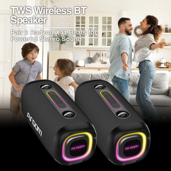 Gracias a esto, la potencia de 28 W del Radyon X41 produce graves profundos y un sonido envolvente. Asimismo, cuenta con dos modos de luces LED dinámicas, que hacen que la música se vea tan bien como se escucha. Además, con la función TWS, puedes conectar dos altavoces y disfrutar de un sonido estéreo completo, mejorando la experiencia musical en cualquier espacio.