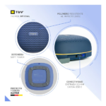 El diseño del Duett es compacto y resistente. Por ejemplo, su caja acústica de polímero ABS protege los componentes internos, mientras que su woofer y tweeter de 1.75” entregan un sonido equilibrado entre graves y agudos. Además, su peso ligero de 0,4 kg y dimensiones de 9,2 x 4,2 x 9,2 cm lo hacen fácil de transportar a cualquier lugar, ya sea reuniones, viajes o salidas al aire libre.