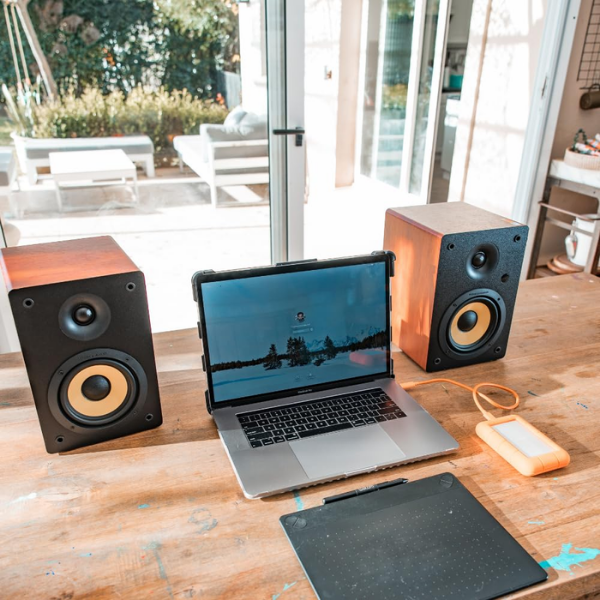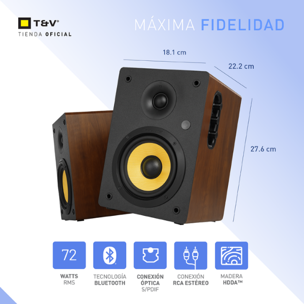 En cuanto a conectividad, este parlante ofrece múltiples opciones. Por ejemplo, se puede conectar por Bluetooth 5.0, S/PDIF (óptico), RCA estéreo o entrada de 3.5 mm, lo que permite disfrutar de tus dispositivos de forma sencilla. Además, incluye control remoto y botones para volumen, graves y agudos, facilitando el ajuste rápido de tu sonido según tus necesidades. De esta manera, puedes tener un control completo sin moverte de tu lugar.