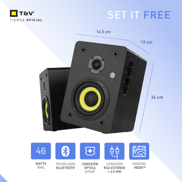 El parlante Thonet & Vander Vertrag BT Home Cinema Gen 1 es ideal para disfrutar de tu música y películas con excelente calidad de sonido. Además, gracias a su conectividad, puedes usar Bluetooth, S/PDIF óptico, RCA estéreo y entrada de 3.5 mm, lo que lo hace compatible con varios dispositivos. Por lo tanto, su diseño moderno y compacto permite colocarlo en cualquier habitación sin ocupar mucho espacio, haciendo que sea una opción muy práctica para el hogar.