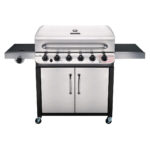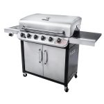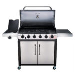 La parrilla es a gas, los quemadores de acero inoxidable, emiten llamas desde la parte superior para una cocción uniforme y mayor durabilidad. Tiene rejillas de hierro fundido, recubiertas de porcelana resistente a la oxidación, que además son muy sencillas de limpiar; este modelo viene con una bandeja de grasa recubierta de porcelana extraíble y encendedor electrónico.