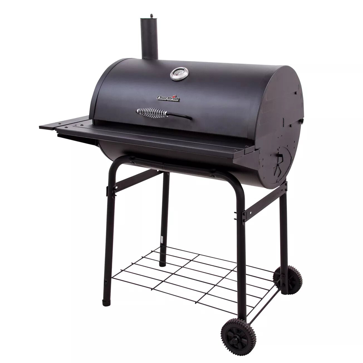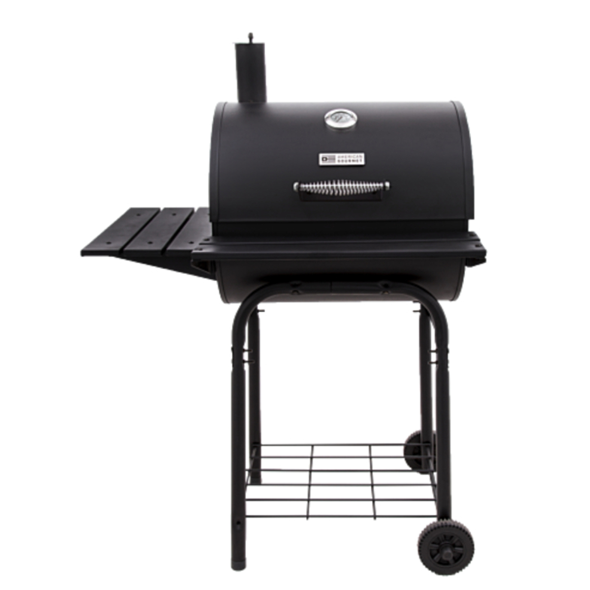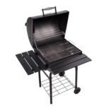 Contás con una campana, que hace la función de extraer el humo en una sola dirección y termómetro en la tapa para controlar de forma sencilla el proceso de cocción. Además, tiene un estante frontal de longitud completa, tres ganchos para herramientas y dos estantes laterales plegables, que proporcionan un amplio espacio útil. para mantener a mano los ingredientes y accesorios mientras se utiliza la parrilla.