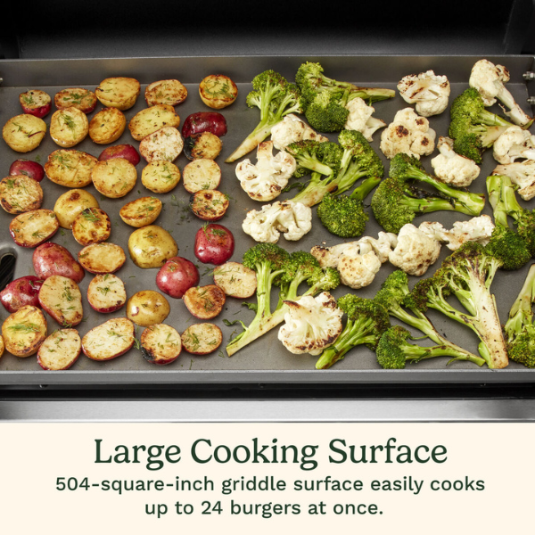 Con su amplia superficie de plancha de 504 pulgadas cuadradas, podrás cocinar hasta 24 hamburguesas al mismo tiempo, lo que la hace ideal para reuniones familiares o fiestas con amigos. Además, su distribución uniforme del calor permite una cocción pareja y rápida, asegurando alimentos dorados y jugosos.