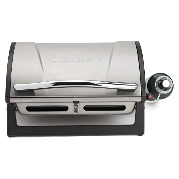 La Cuisinart Grillster CGG-059 es una parrilla de gas portátil diseñada para quienes disfrutan de cocinar al aire libre sin complicaciones. Gracias a su amplia superficie de cocción de 146 pulgadas cuadradas, podrás preparar varias porciones a la vez, ya sea carne, verduras o pescado. Además, su parrilla esmaltada es resistente y apta para lavavajillas, lo que facilita su limpieza después de cada uso.