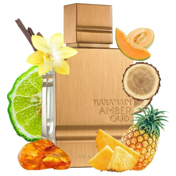 Haramain Amber Oud Gold Edition es una fragancia cautivadora que combina notas frescas y cítricas con un corazón cálido de ámbar. Su estela amaderada y duradera, junto con el elegante frasco dorado, hacen de este perfume la elección perfecta para una presencia distintiva y sofisticada en cualquier ocasión.
