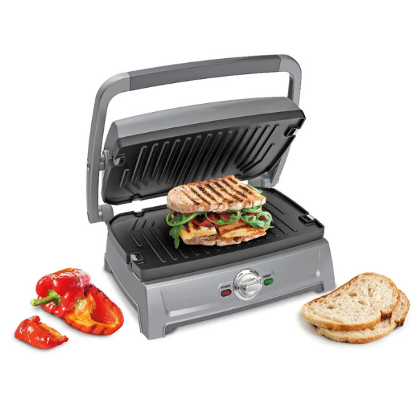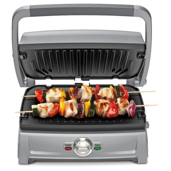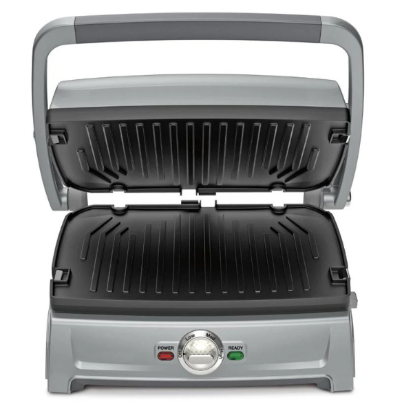 La plancha compacta Cuisinart GR-102 es un electrodoméstico versátil que combina parrilla, plancha y prensa para paninis en un solo diseño. Ideal para preparar desde desayunos rápidos hasta cenas completas, con resultados deliciosos y saludables en minutos.
