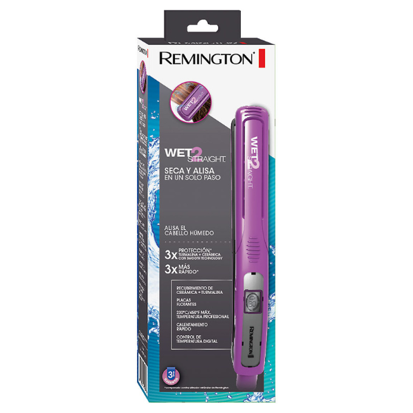 La plancha Remington Wet2Straight S7901P seca y alisa tu cabello en un solo paso. Además, gracias a su tecnología Wet2Straight, puedes usarla con el cabello húmedo o seco, lo que significa que ahorrarás tiempo mientras logras un acabado liso y brillante. Sus placas recubiertas de cerámica y turmalina cuidan tu cabello, evitando el frizz y dejándolo suave al tacto.