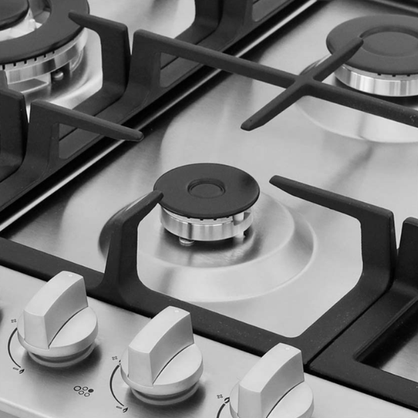 Por otra parte, la seguridad también es una prioridad en este modelo. Sus perillas y quemadores cuentan con protección contra filtraciones, evitando derrames y facilitando la limpieza. Igualmente, las parrillas de hierro fundido continuo permiten mover ollas y sartenes con total seguridad, manteniendo la estabilidad durante la cocción.