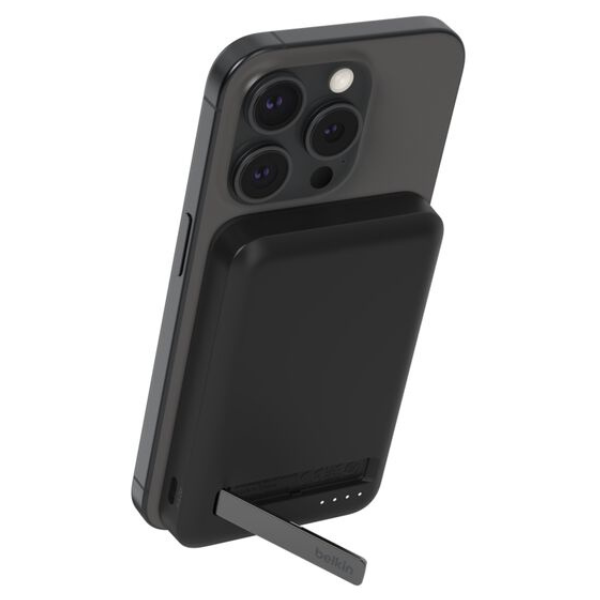 La Power Bank Belkin BoostCharge Pro Magnética 5K con Qi2 15 W es una batería externa que simplifica tu vida móvil, ya que permite cargar teléfonos con Qi2 y MagSafe sin cables. Además, ofrece hasta 15 W de potencia; por lo tanto, puedes mantener tu dispositivo siempre activo mientras trabajas o disfrutas de entretenimiento. Incluso funciona como soporte, lo que te permite mantener el ángulo de visión ideal y, así, mejorar la comodidad durante su uso.