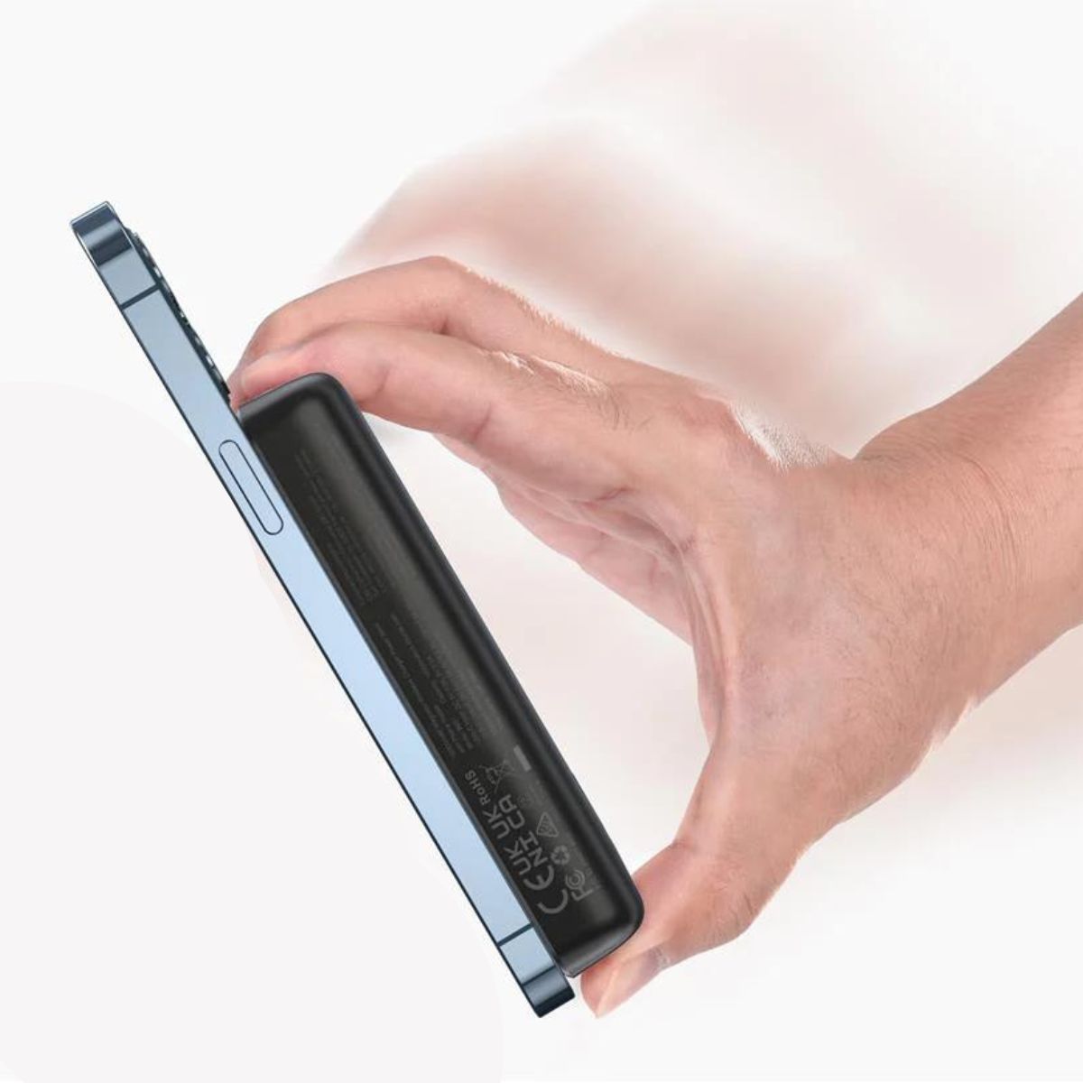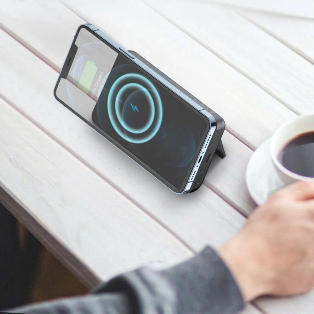 • Cargador inalámbrico magnético con soporte para teléfono.