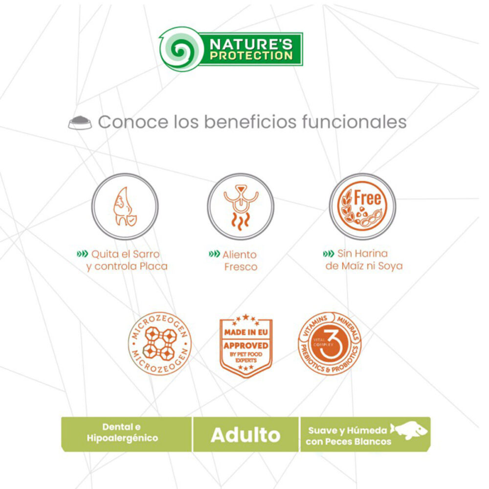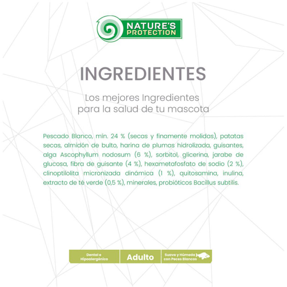 Lo más destacado de los Premios Nature’s Protection Hypoallergenic Dental es que no solo ofrecen beneficios dentales excepcionales, sino que también son especialmente amigables con los estómagos sensibles. Al contar con ingredientes cuidadosamente seleccionados, estos premios no contienen alérgenos comunes, evitando así cualquier posible reacción adversa en tu mascota. En resumen, son la elección perfecta para cuidar la salud bucal y además el bienestar general de tu perro. ¡Hazte con estos premios hoy mismo y bríndale a tu perro el cuidado dental que se merece con los Premios Nature’s Dental!