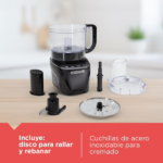 Finalmente, todas sus piezas removibles son aptas para lavavajillas, por lo que la limpieza después de cada uso es mucho más rápida y práctica. Igualmente, incluye un disco reversible para rebanar y desmenuzar, además de una cuchilla S de acero inoxidable, la cual te permite cortar, mezclar y procesar con gran precisión, ahorrando tiempo y esfuerzo en cada preparación.