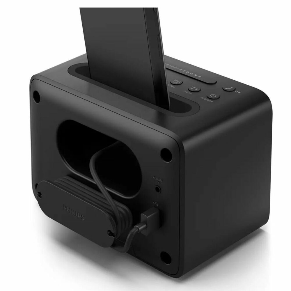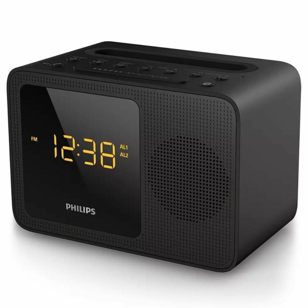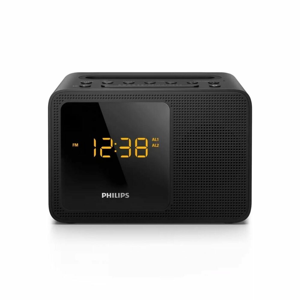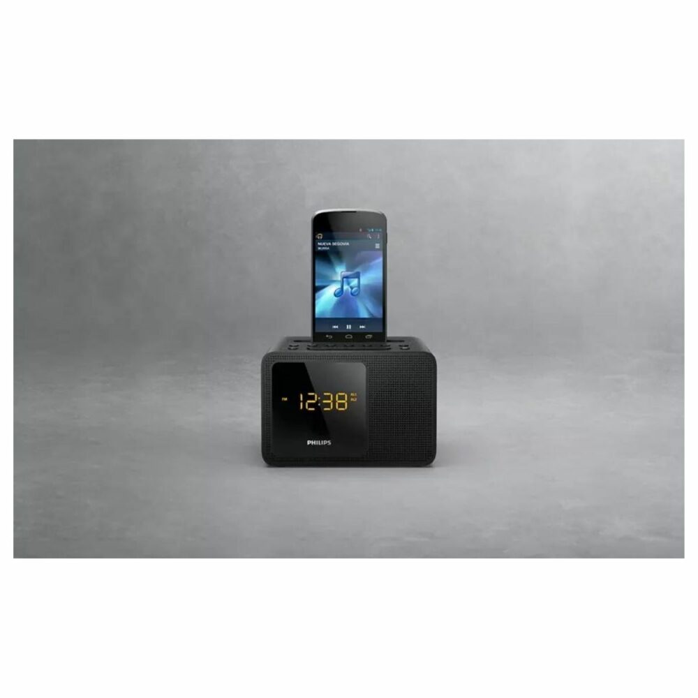 La radio FM digital te ofrece más opciones, para que disfrutés de la música en tu sistema de audio Philips. La conexión de entrada de audio, permite la reproducción directa de contenido de audio, desde reproductores portátiles. También podés despertarte con tu radio favorita o con el sonido de la alarma. El sistema de audio de Philips incorpora dos alarmas. Ajusta una hora de alarma para vos y otra para despertar a tu pareja. Además, contá con la opción de repetir la alarma cada 5 minutos.