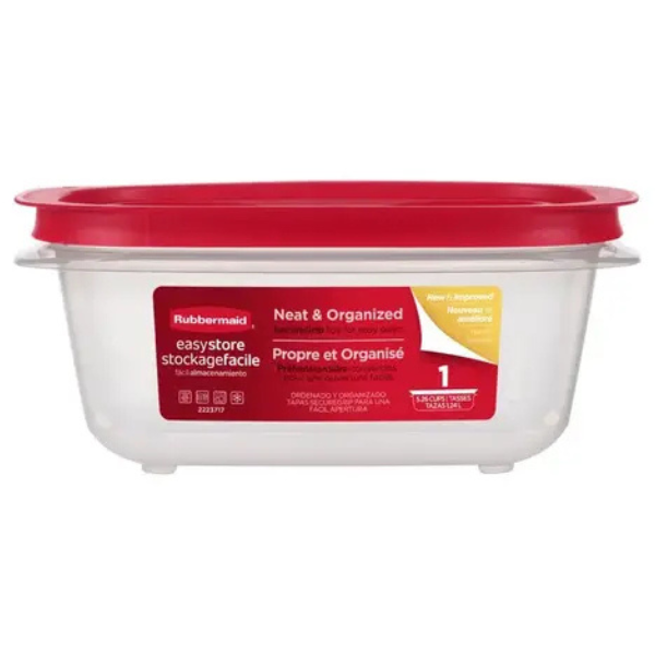Organiza tu cocina fácilmente con el recipiente rectangular Rubbermaid EasyStore de 5.26 tazas. Además, su tapa SecureGrip garantiza un cierre hermético y, por lo tanto, su diseño apilable permite ahorrar espacio, ideal para almacenar sobras, refrigerios o llevar comida fuera de casa.