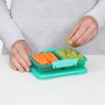 Asimismo, su diseño incluye dos compartimentos que mantienen los alimentos separados hasta el momento de comerlos. Gracias a esto, los sabores no se mezclan y la comida se mantiene en perfecto estado. Además, su forma compacta facilita su colocación en mochilas, bolsos o cajones.